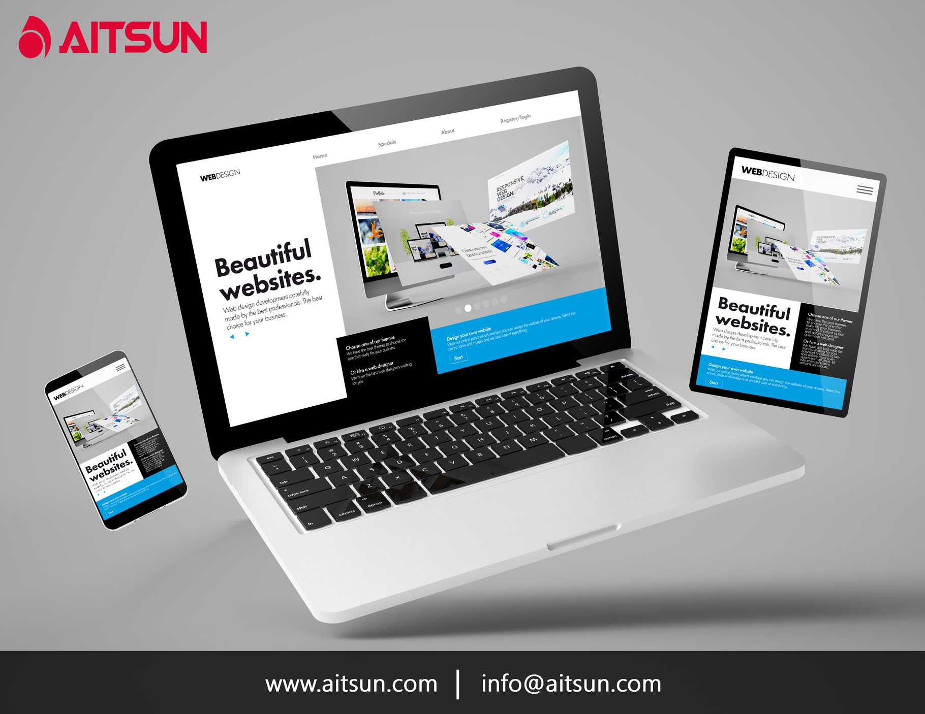 AITSUN empowers you to bring your ideas to life. With our all-inclusive web builder you can design, manage and grow your online presence—all from one powerful platform.
